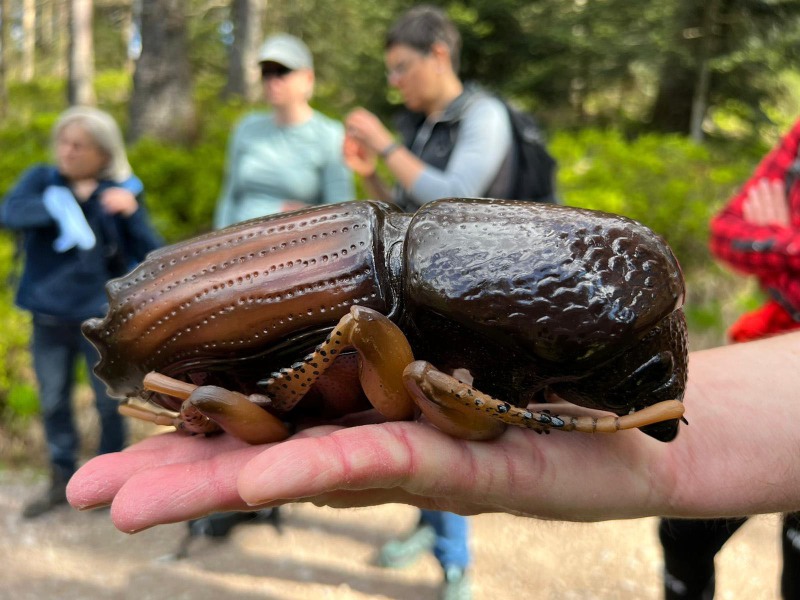 Am Sonntag, 22.05.2022 fand im Rahmen der Veranstaltungsreihe „Pforzheim erleben“ erstmals die Führung „Unser Wald & Wildpark“ statt. WIldparkförster Carsten Schwarz und Wanderführer Martin Hämmerle schärften bei der 10 km langen Tour den Blick der Wanderer auf die unterschiedlichen Erscheinungsbilder der heimischen Wälder. Natürlich kamen dabei auch der Klimawandel und seine Auswirkungen auf den Wald und was jeder Einzelne in kleinen Schritten dagegen tun kann zur Sprache. Die Kraft der Natur zeigte sich bei den Römischen Ruinen im Kanzlerwald, wo sich die Natur über die Jahrhunderte wieder zurückgeholt hat, was der Mensch ihr einst abrang. Viele weitere Geschichten und Anekdoten über den Wald und seine Tiere, über die Nutzung des Rohstoffs Holz, über die Jagd und ihren Einfluss auf den Wald ließen die Zeit wie im Fluge vergehen. Der Höhepunkt, nicht nur für den kleinen Theo, kam ganz am Ende der Tour im Wildpark bei der Fütterung der Elche mit frischem Grün. Die Führung „Unser Wald & Wildpark – Naturraum? Kulturraum? Lebensraum!“ findet in den Sommerferien erneut statt, am Sonntag, 20. August. Anmeldung bei der Tourist-Info Pforzheim per Mail unter gruppen@ws-pforzheim.de oder telefonisch unter 07231 39-370