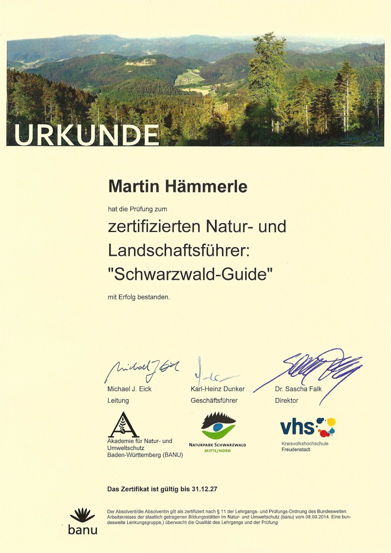 Von Oktober 2021 bis Juli 2022 durfte ich meine Ausbildung zum Schwarzwald Guide absolvieren.